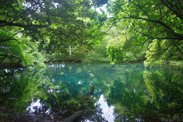 ここは本当に池なのかと思うくらい綺麗だった。透明度は高くないものの、水面の反射のせいでどこが境目なのかわからないくらいだった。